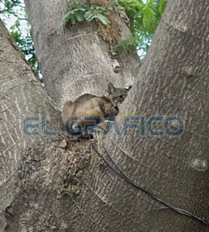Fue el Centro de Comando, Control, Cómputo, Comunicaciones y Contacto Ciudadano (C-5) quien reportó que en un árbol se encontraba un gato montés.