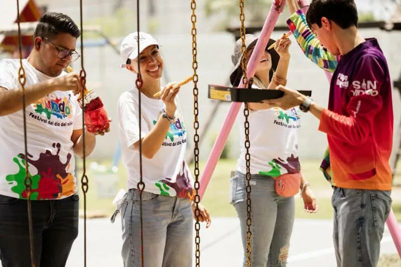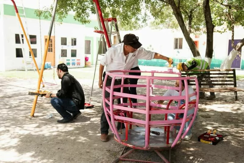 Durante esta jornada se realizó mantenimiento de áreas verdes, encalichado de árboles, restauración de pintura de las canchas de juego, ligado y pintura de juegos infantiles, así como restauración de pintura de los edificios, impermeabilización de techos y mantenimiento en interiores.