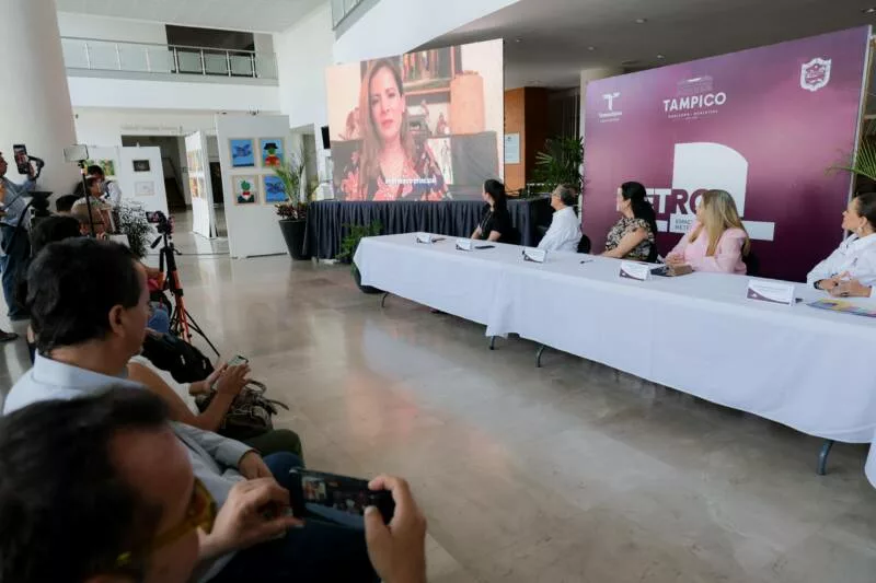 En rueda de prensa, la Presidenta Municipal de Tampico, Mónica Villarreal Anaya, acompañada de Mariana Moctezuma Córdova, Directora del Metro Tampico; Blanca Estela Pulido, Subsecretaria de Cultura; y David Rodríguez de la Peña, Secretario de Cultura, destacó que este evento de talla internacional refleja el firme compromiso del Gobierno Municipal de Tampico con el impulso al arte y al fortalecimiento de la vida cultural en la ciudad.