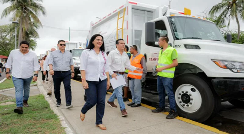 Cumpliendo el compromiso de ampliar la cobertura en el servicio de recolección de basura en el municipio de Tampico, la alcaldesa Mónica Villarreal Anaya dio el banderazo de salida a 10 nuevos camiones recolectores proporcionados por el Gobierno del Estado, con una inversión de 36 millones de pesos.