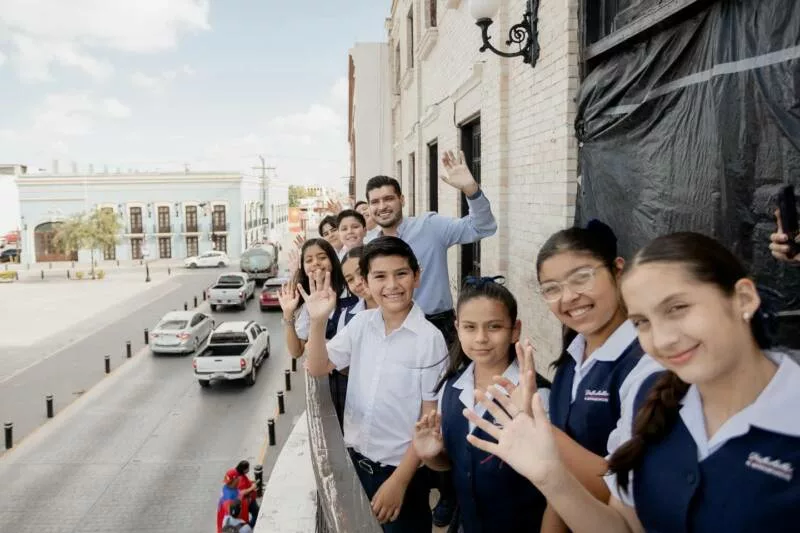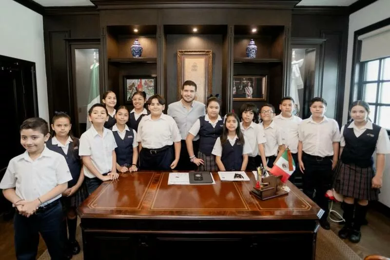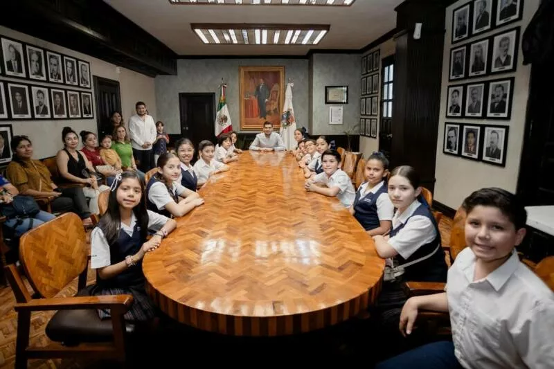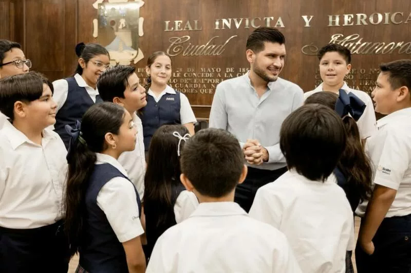 H. Matamoros, Tamaulipas.- El alcalde de Matamoros, Beto Granados, recibió con gran entusiasmo a un grupo de alumnos del Colegio La Salle, quienes realizaron una visita a la Presidencia Municipal como parte de sus actividades formativas.