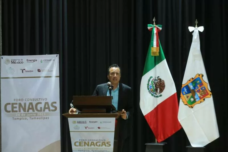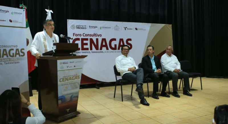 Tampico, Tamaulipas.- El gobernador Américo Villarreal y el director general del Centro Nacional de Control de Gas, Cuitláhuac García Jiménez, presidieron el Foro Consultivo CENAGAS 2025, en el que se analizaron temas sobre infraestructura, expansión de la red del Sistema Nacional de Ductos, regulación y almacenamiento estratégico de gas natural en Tamaulipas.
