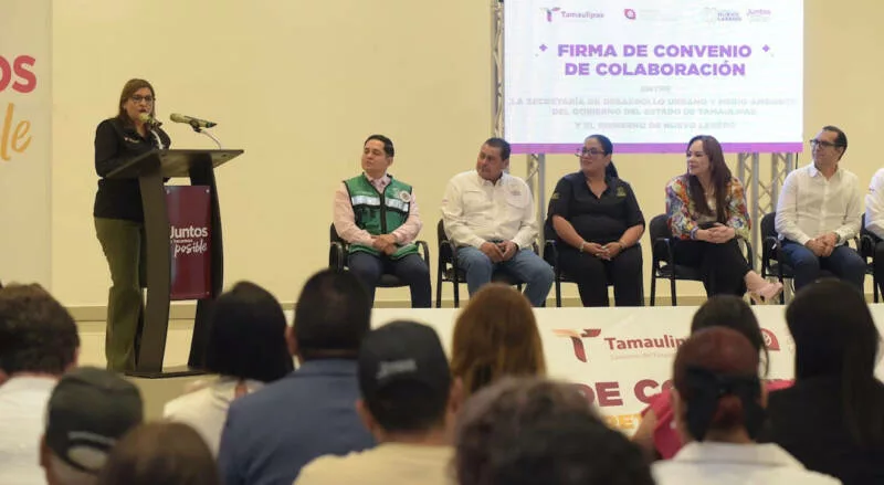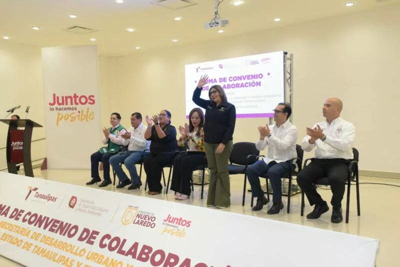 Nuevo Laredo, Tamaulipas.- En cumplimiento de la agenda ambiental del Gobierno de Tamaulipas y con el objetivo de fortalecer la colaboración interinstitucional en materia de crecimiento sostenible, la Secretaría de Desarrollo Urbano y Medio Ambiente (SEDUMA) y el Gobierno Municipal de Nuevo Laredo firmaron un convenio de colaboración que permitirá coordinar acciones conjuntas enfocadas en la reforestación urbana, la donación de árboles y la integración del sector empresarial comprometido con el cuidado del entorno.