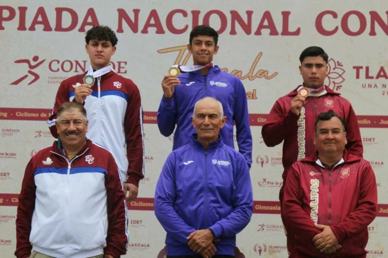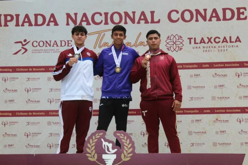 Apizaco, Tlaxcala.- El atleta tamaulipeco Jesús Rolando Padilla Vidales obtuvo la medalla de bronce en la prueba de lanzamiento de disco dentro de la categoría Sub-20, en las competencias de atletismo de la Olimpiada Nacional 2025, celebradas en el estado de Tlaxcala.