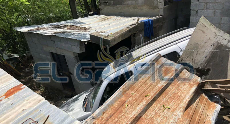 Otra versión refirió que la camioneta se encontraba estacionada, y aparentemente se le “botaron” los cambios, lo que ocasionó que cayera sobre el inmueble causando cuantiosos daños materiales.