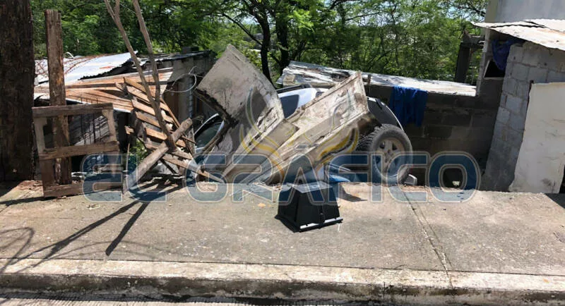 En el lugar de los hechos se recabaron dos versiones, una de las cuales señaló que la camioneta era tripulada por una persona que perdió el control en una pendiente y tras abandonar la superficie de rodamiento vehicular cayó desde una altura de tres metros sobre el domicilio.