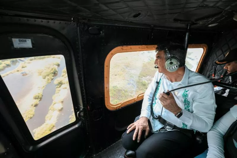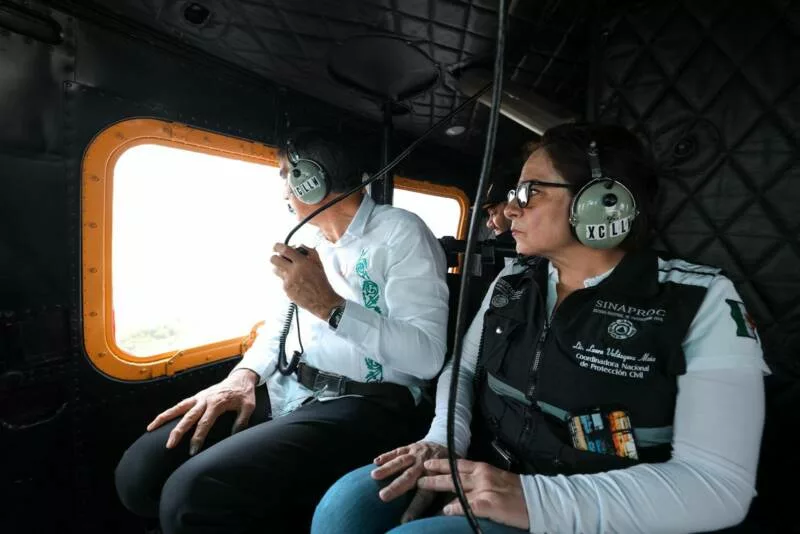 Ciudad Madero, Tamaulipas.- Con el propósito de dar seguimiento a la creciente de los ríos y lagunas en el sur del estado y para supervisar las zonas vulnerables a inundaciones, el gobernador Américo Villarreal Anaya y la coordinadora nacional de Protección Civil, Laura Velázquez Alzúa, realizaron un sobrevuelo y acordaron mantener todas las medidas de prevención y alertamiento.