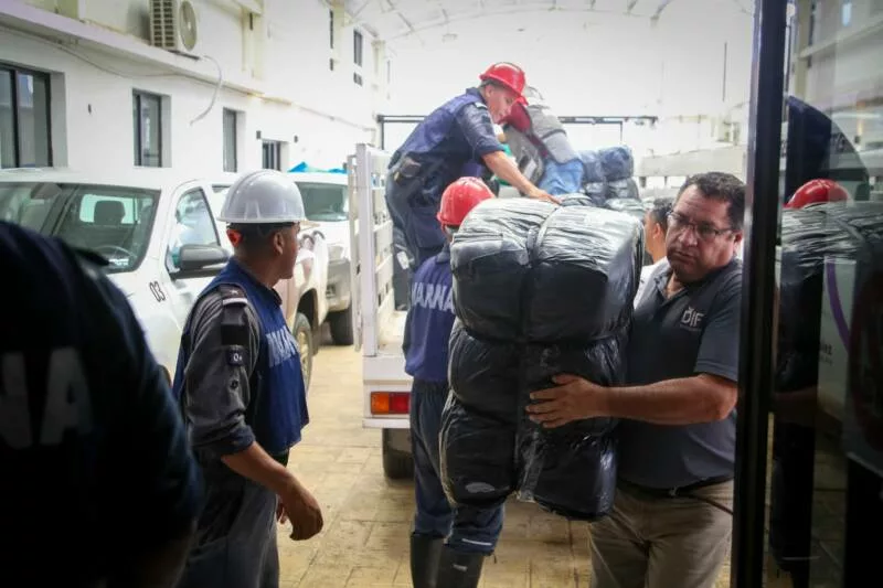 En una primera etapa, se realiza la entrega de cobertores y apoyos alimentarios en coordinación con los Sistemas DIF Municipales y las autoridades federales. En esta ocasión se llevó a cabo en el municipio de González, donde la ayuda enviada por los Mensajeros de Paz será distribuida en los hogares afectados.