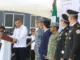 En el solemne acto militar realizado en el Complejo de la Guardia Nacional, el mandatario estatal agradeció al comisario jefe Ignacio Murillo Rodríguez, titular de la Coordinación Territorial de la Guardia Nacional Región Golfo, estas acciones e informó que, por su conducto, la presidenta Claudia Sheinbaum les envió una felicitación por los avances en seguridad.
