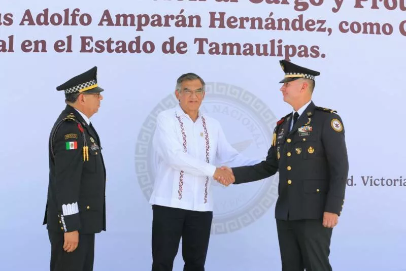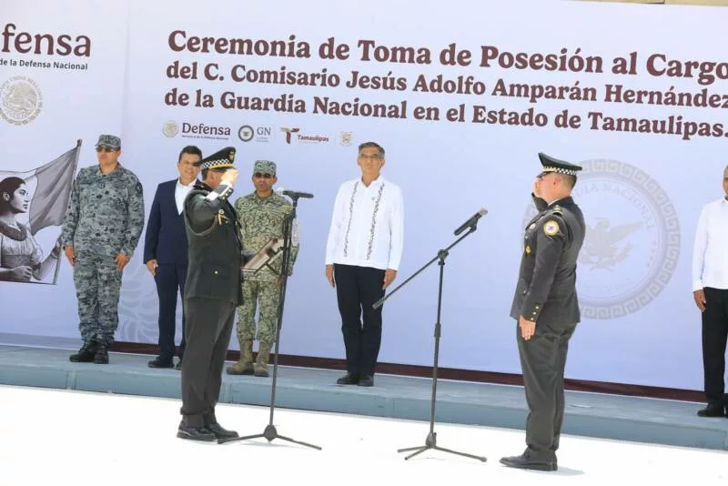 Luego de tomar la protesta de ley y dar la posesión del cargo al comisario Jesús Adolfo Amparán Hernández como coordinador de la Guardia Nacional en Tamaulipas, por instrucciones de la presidenta Claudia Sheinbaum, el titular de la Coordinación Territorial de la Guardia Nacional Región Golfo, Ignacio Murillo, expresó que la población tamaulipeca siempre contará con la Guardia Nacional.