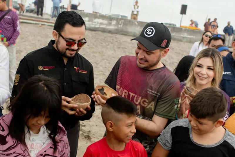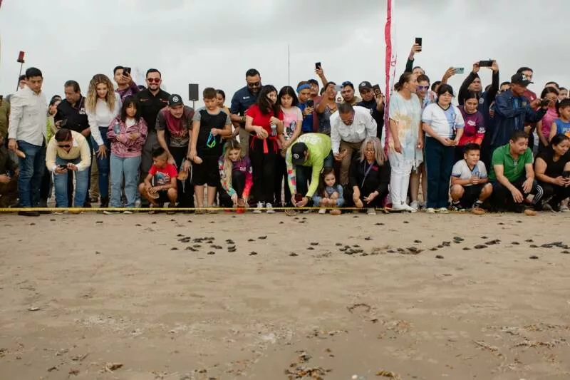 H. Matamoros, Tamaulipas.- El presidente municipal , Beto Granados encabezó en la playa Bagdad, la liberación de crías de tortuga lora (Lepidochelys kempii), una especie en peligro de extinción y símbolo de nuestras costas, reafirmando así el compromiso con la conservación de la biodiversidad y la protección del medio ambiente.
