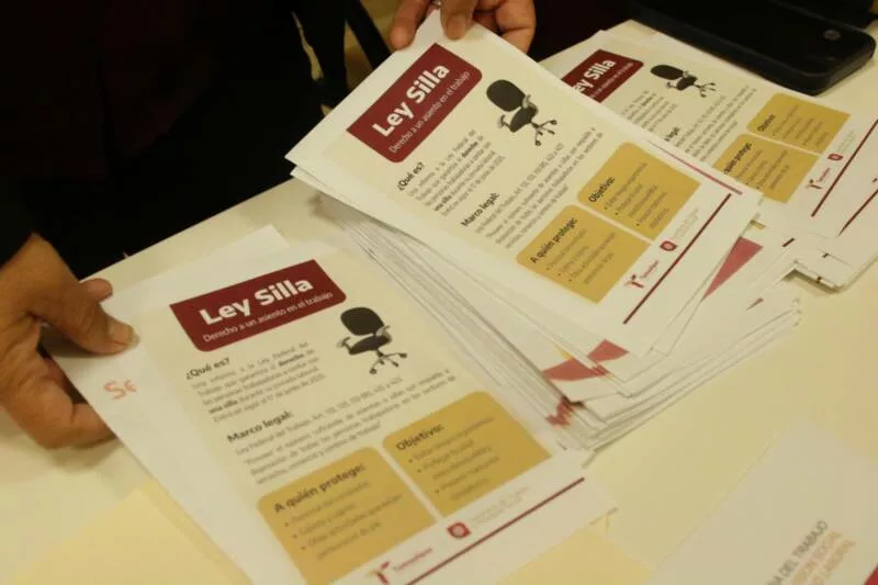 Esta actividad fue desarrollada por la Dirección de Inspección y Previsión Social, a cargo de Claudia Yazmín Villarreal Vázquez, quien destacó la importancia de brindar información clara, práctica y fundamentada sobre los derechos y obligaciones relacionados con el uso de sillas en actividades que requieren permanecer de pie durante periodos prolongados.