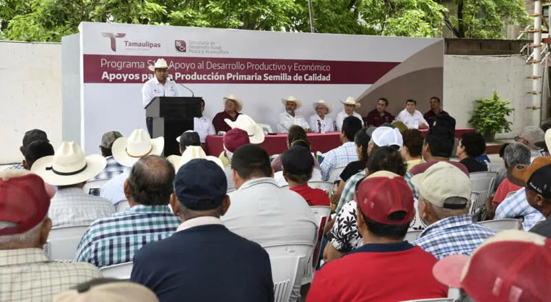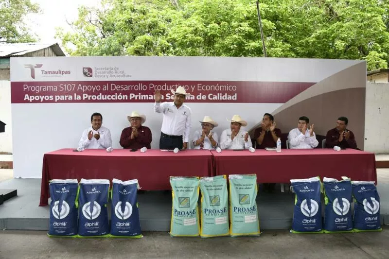 La entrega fue encabezada por el subsecretario de Desarrollo Agrícola, Eliseo Camacho Nieto, en representación del titular de la dependencia estatal, Antonio Varela Flores. Durante el evento, Camacho Nieto destacó que el gobernador del estado, Américo Villarreal Anaya, ha destinado un presupuesto de 24 millones de pesos para el programa de semilla, con el objetivo de beneficiar a un total de 3 mil productores distribuidos en diversos municipios de Tamaulipas.