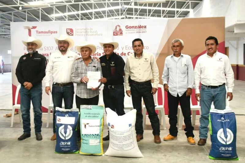 Altamira, Tamaulipas. – Como parte del compromiso con el desarrollo del campo tamaulipeco, el Gobierno del Estado, a través del programa Fomento a la Producción Rural 2025, continúa fortaleciendo la productividad de los pequeños y medianos productores agrícolas, en esta ocasión, se benefició a los municipios de Aldama, Altamira y González con la entrega de 41 toneladas de semilla de cártamo, sorgo y maíz, en apoyo directo a 555 productores de la región.