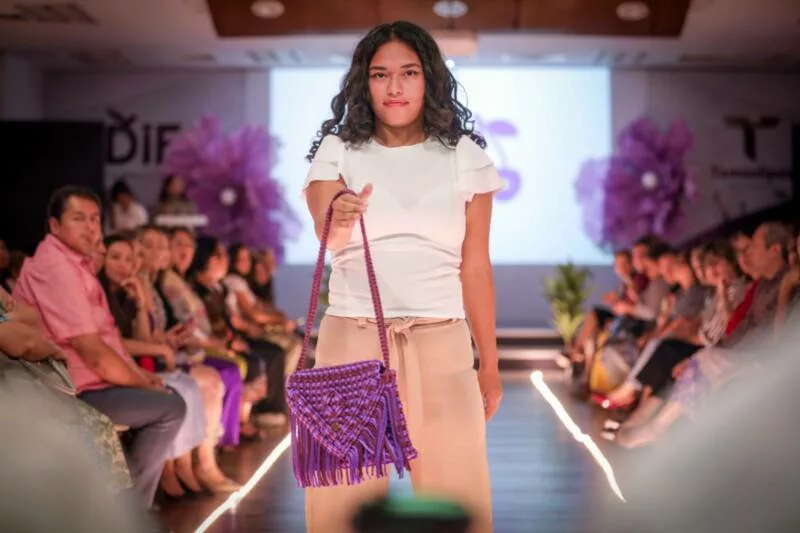 Ciudad Victoria, Tamaulipas.- En un ambiente de inclusión y creatividad, el Sistema DIF Tamaulipas, que preside la doctora María de Villarreal, celebró el concurso de modas “Talento Artesanal”, con la participación de alumnas y alumnos de la escuela “Camino de Luz”, quienes presentaron sus propias colecciones de bolsas artesanales elaboradas con técnicas de macramé y crochet.