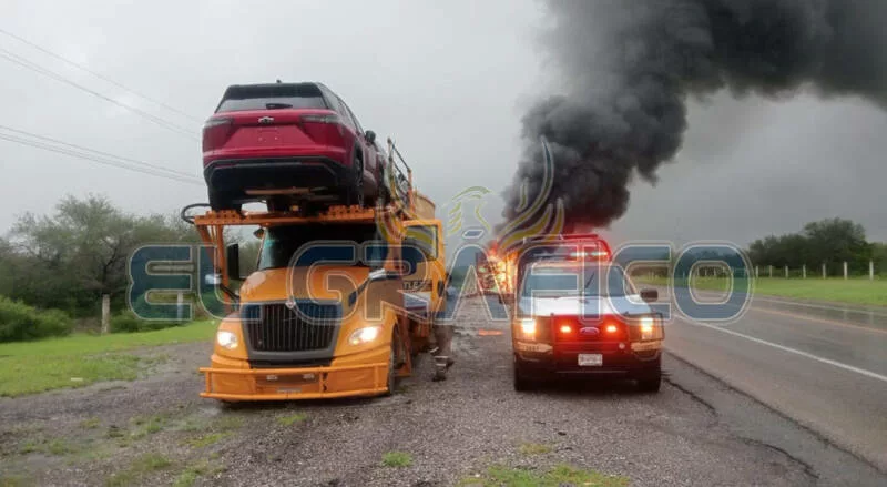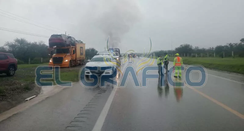 Cuando menos cinco vehículos último modelo fueron consumidos por el fuego a la altura del municipio de Llera.