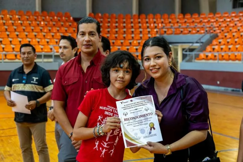 Ciudad Victoria, Tamaulipas.-Con la participación de más de 400 niñas y niños, se llevó a cabo la ceremonia de clausura del “Campamento de Verano y Visorias INDE 2025” en la Unidad Deportiva Siglo XXI. Durante dos semanas, las y los participantes fueron activados físicamente en disciplinas como fútbol, gimnasia rítmica, básquetbol, luchas asociadas, taekwondo, esgrima, voleibol, tenis de mesa, ciclismo, skateboarding, natación, clavados y tiro deportivo, con el objetivo de fomentar el deporte en vacaciones y detectar nuevos talentos.