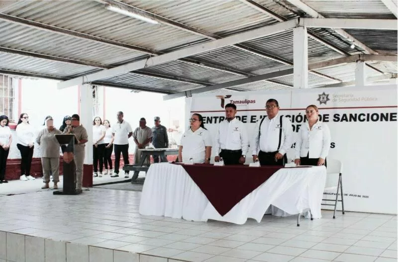 La ceremonia contó con la presencia del director del CEDES Victoria, Fernando Aguilar De la Garza; el subdirector jurídico, José Luis Salazar Peña; la jefa de Mediación Penitenciaria, Dulce Rosario Villanueva Bustos; y la jefa del Departamento de Educación, Cultura y Deporte, Perla Aurora Escamilla Niño.