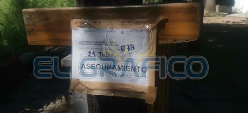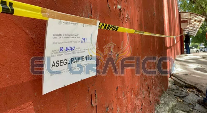 Con la advertencia de que el quebranto de los avisos de aseguramiento representa un delito del fuero federal, el personal de la Conagua colocó diversos avisos en la pared posterior del Colegio Antonio Repiso.