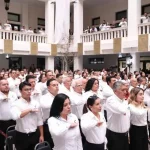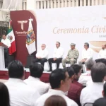 Como parte de la ceremonia cívica, el juramento a la bandera estuvo a cargo de Rómulo Pérez Sánchez, subsecretario de Enlace Legislativo, mientras que, Armando Núñez Montelongo, subsecretario de Transporte Público, y Tomás Gloria Requena, subsecretario de Gobierno, dieron lectura a las efemérides de la semana.