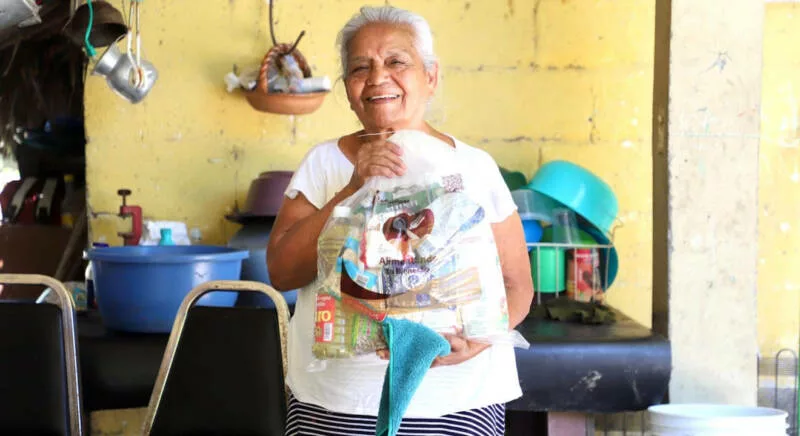 “Es una gran ayuda, nos alivia en la alimentación porque a veces no hay ni para tortillas, pero con lo que trae el paquete de alimentos salimos adelante, por eso es bien importante que nos llegue siempre y a tiempo”, añadió.