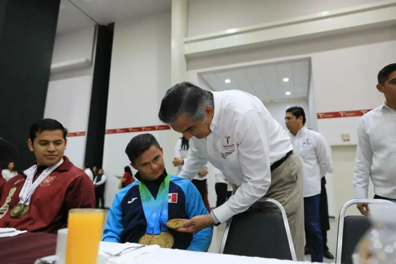 "Es un ejemplo y orgullo para Tamaulipas", afirmó el gobernador ante el aplauso de pie que le brindaron al joven atleta, presente en la ceremonia.