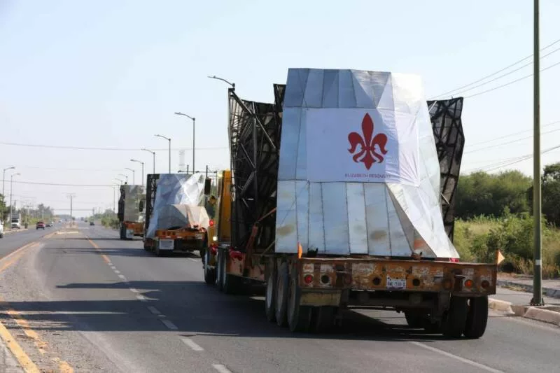 Hidalgo, Tamaulipas. - Con gran entusiasmo, fe y esperanza, habitantes del municipio de Hidalgo recibieron las primeras piezas que edificarán la monumental Virgen en El Chorrito.