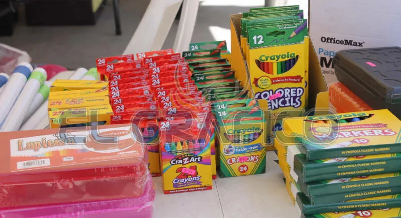 Mediante convocatoria abierta entre la comunidad, se recaudan los útiles escolares, que posteriormente se reparten entre la comunidad que los necesita.