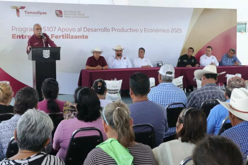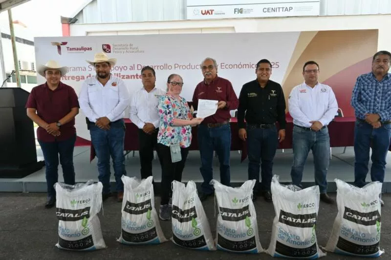 El secretario de Desarrollo Rural, Pesca y Acuacultura, Antonio Varela Flores, encabezó el arranque de la entrega de fertilizante en el municipio de Güémez, donde se benefició a 225 productores citrícolas con un total de 70.25 toneladas de fertilizante, con el objetivo de fortalecer la productividad y sostenibilidad del campo tamaulipeco.