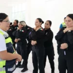 Con una duración de cinco horas, esta capacitación dirigida a 25 elementos de la Guardia Estatal de Género y personal administrativo de esta delegación tiene el objetivo de que las y los participantes conozcan las técnicas adecuadas de reanimación cardiopulmonar (RCP), desobstrucción de la vía aérea, atención a heridas, quemaduras y hemorragias.