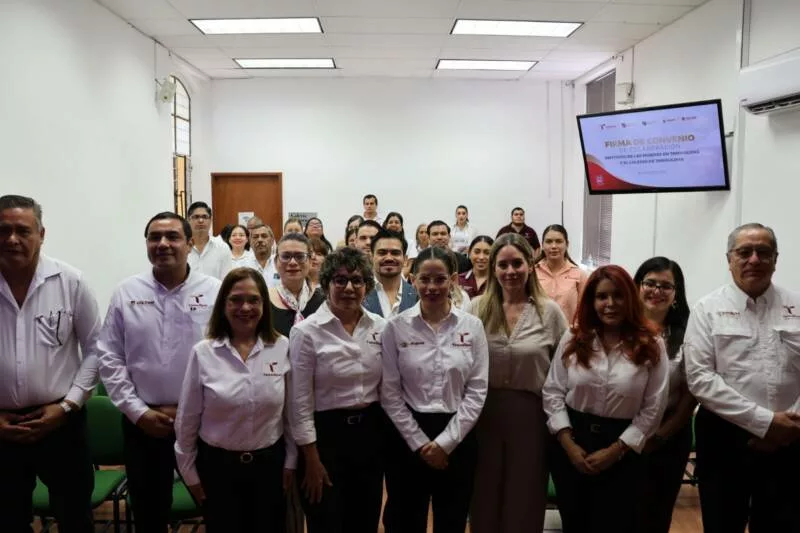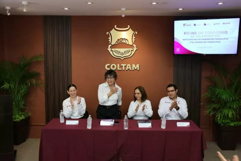 Ciudad Victoria, Tamaulipas. – Con el objetivo de fortalecer el desarrollo de formación continua y la investigación en materia de género y generar información que contribuya a la elaboración de políticas públicas más efectivas, el Instituto de las Mujeres en Tamaulipas (IMT) y el Colegio de Tamaulipas (COLTAM) firmaron un convenio de colaboración interinstitucional en las instalaciones del Colegio de Tamaulipas, evento que contó con la presencia de autoridades, entre ellas Silvia Casas, secretaria de Bienestar Social y Sylvia Isabel Martínez, subsecretaria de Planeación de la Secretaría de Educación.