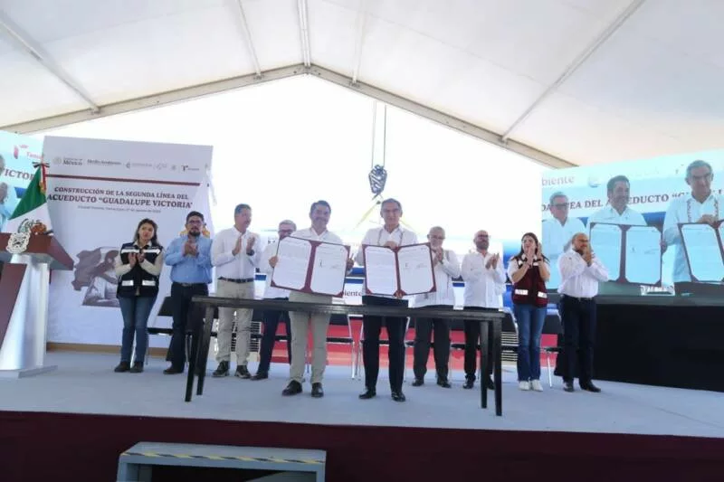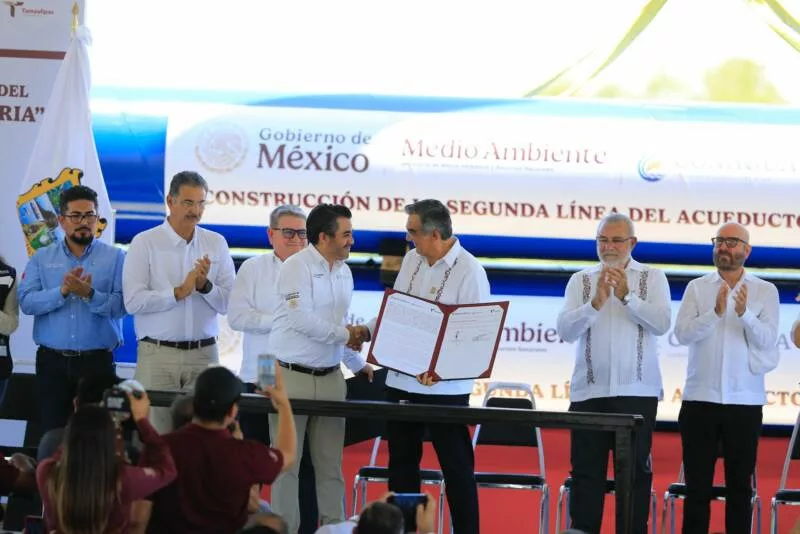 En un evento histórico, en la Planta de Rebombeo No. 1, el gobernador y el director de la Conagua firmaron también el convenio de colaboración para la ejecución de la segunda línea del acueducto de la presa Vicente Guerrero a Ciudad Victoria, el cual comprende 54.7 kilómetros para disposición y saneamiento del agua para consumo personal y doméstico a la ciudadanía.