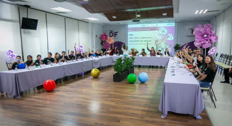 Ciudad Victoria, Tamaulipas.- Para continuar trabajando en la promoción y difusión del derecho que tienen los menores a la libertad de convicciones éticas, pensamiento, conciencia, religión y cultura, el Sistema para el Desarrollo Integral de la Familia de Tamaulipas, presidido por la doctora María de Villarreal, con el apoyo de personal del Sistema Nacional DIF, llevó a cabo el foro híbrido “Niñas, Niños y Adolescentes Conociendo las Culturas”.