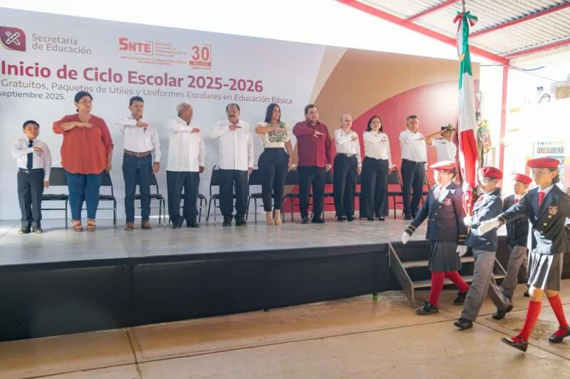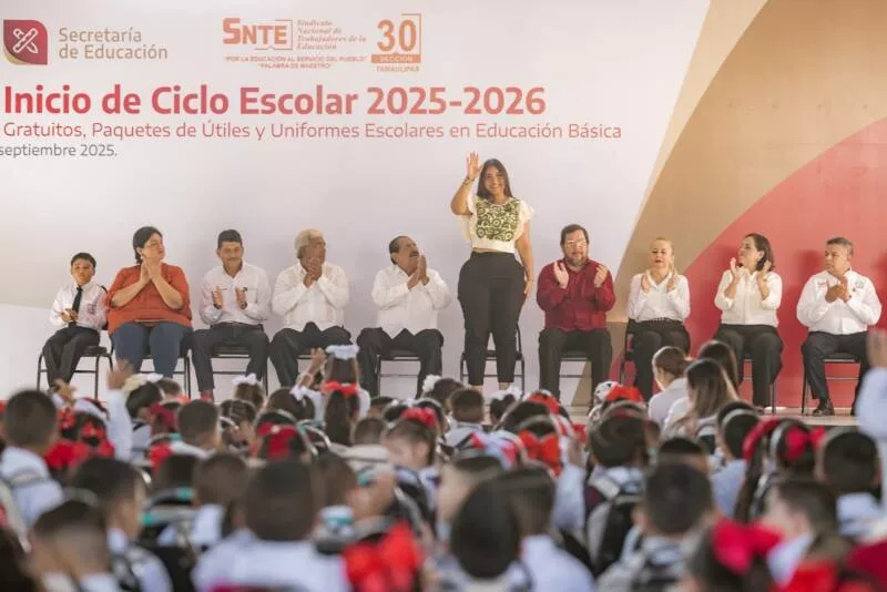 Soto la Marina, Tamaulipas.– A nombre del gobernador Américo Villarreal Anaya, el secretario de Educación, Miguel Ángel Valdez García, puso en marcha el ciclo escolar 2025–2026, en el que se entregaron más de 538 mil paquetes de útiles, 48 mil uniformes escolares y casi 4 millones de libros de texto gratuitos en el estado.