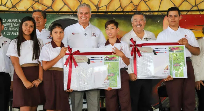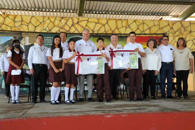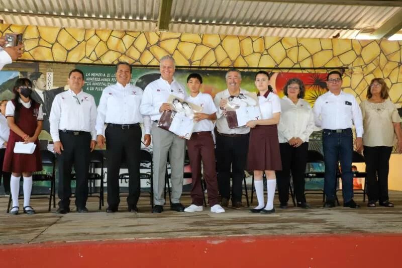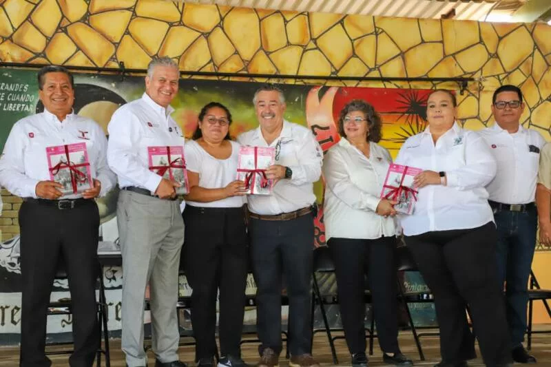 “Y hoy recibimos estos apoyos: los libros, los uniformes, los útiles escolares, sin dejar atrás los desayunos que envía el DIF estatal. Por todo esto, muchas gracias y recordarles a nuestros alumnos que sin educación no hay transformación.”