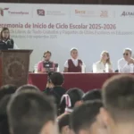 Saldívar Lartigue, subrayó que cada ciclo escolar consolida la visión humanista de la Nueva Escuela Mexicana, que impulsa la presidenta de la República, Claudia Sheimbaun Pardo, para busca mejorar la calidad educativa.