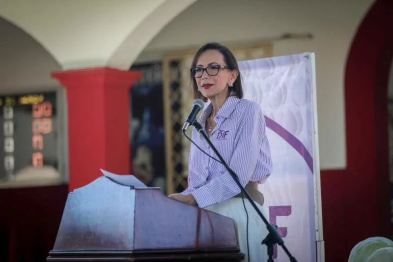 Güémez, Tamaulipas.- El Sistema para el Desarrollo Integral de la Familia de Tamaulipas que preside la doctora María de Villarreal, realizó la entrega simbólica de insumos alimentarios que enmarcaron el arranque del programa Desayunos Escolares para el ciclo escolar 2025-2026.