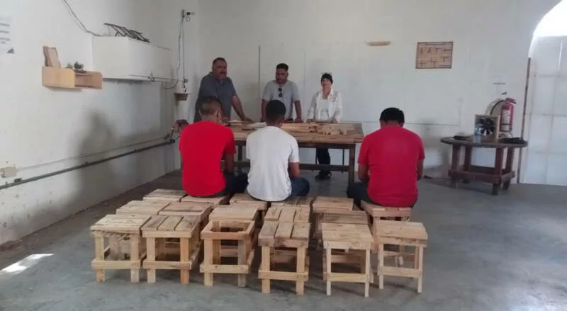 Reynosa, Tamaulipas.- Como una forma de emplear los conocimientos adquiridos en el Taller de Carpintería impartido en el Centro Regional de Ejecución de Medidas para Adolescentes en el municipio de Reynosa, y a la vez, fomentar el humanismo como factor para prevenir la reincidencia delictiva, menores de edad en externamiento elaboraron y donaron 80 sillas de madera a la Casa del Migrante ‘’Senda de Vida’’.