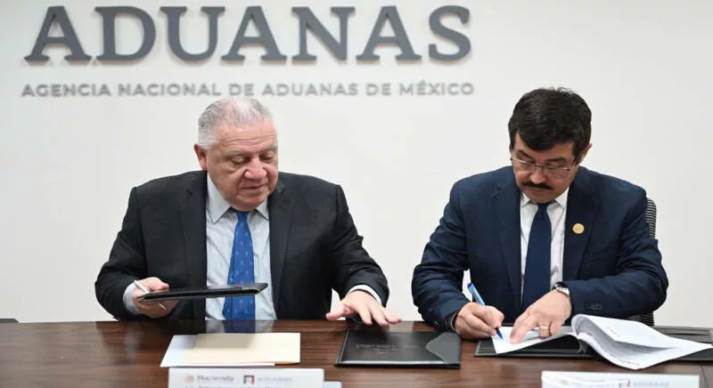 El rector de la Universidad Autónoma de Tamaulipas (UAT), Dámaso Anaya Alvarado, y el titular de la Agencia Nacional de Aduanas de México (ANAM), Rafael Marín Mollinedo, firmaron un convenio de colaboración que permitirá a la casa de estudios fortalecer la formación aduanera y técnica de las nuevas generaciones y consolidar su papel como puente entre la educación superior y los sectores estratégicos del país.