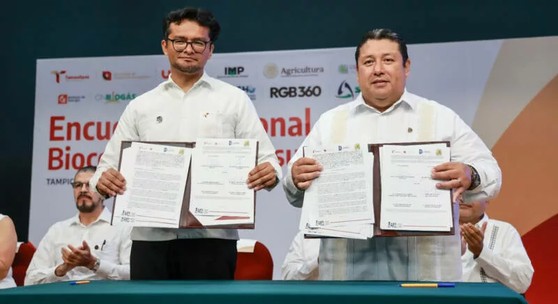 Tampico, Tamaulipas.- En el marco del “Encuentro Nacional de Biocombustibles y sus Mezclas”, el secretario de Desarrollo Energético de Tamaulipas, Walter Julián Ángel Jiménez, celebró la firma de un convenio con el Instituto Tecnológico de Ciudad Madero, con el propósito de fortalecer el desarrollo de biocombustibles y fomentar la formación de investigadores en la aplicación de estos temas.