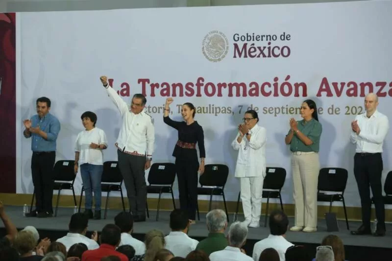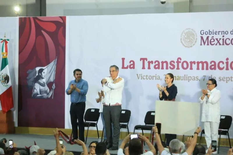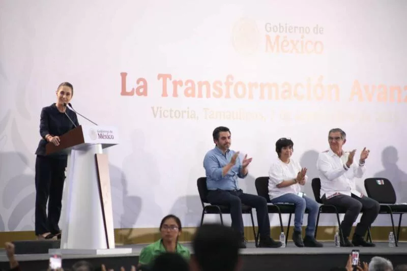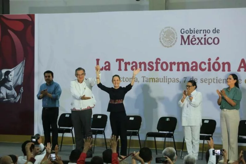 Ciudad Victoria, Tamaulipas. - La presidenta Claudia Sheinbaum Pardo reconoció el trabajo que realiza el gobernador Américo Villarreal Anaya para el bienestar de las y los tamaulipecos y reiteró todo el apoyo de su gobierno para consolidar la transformación del estado.