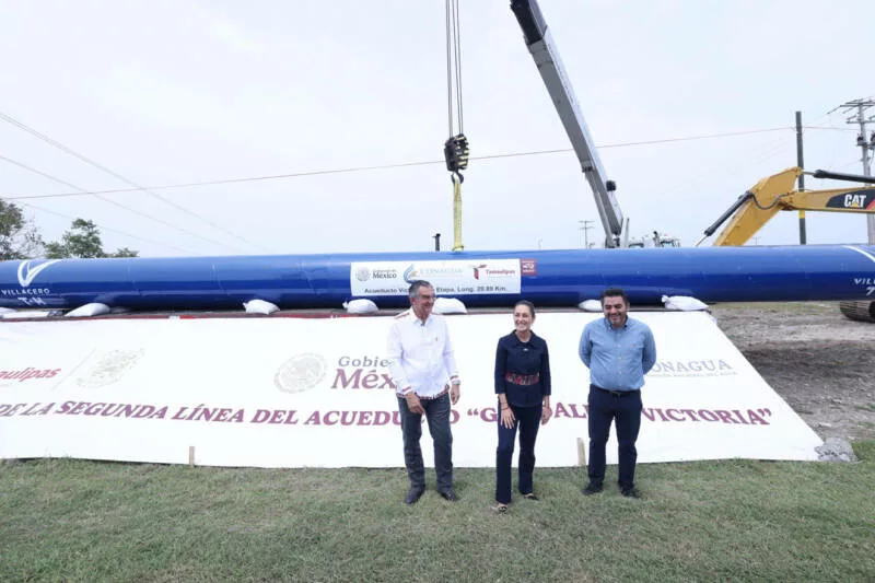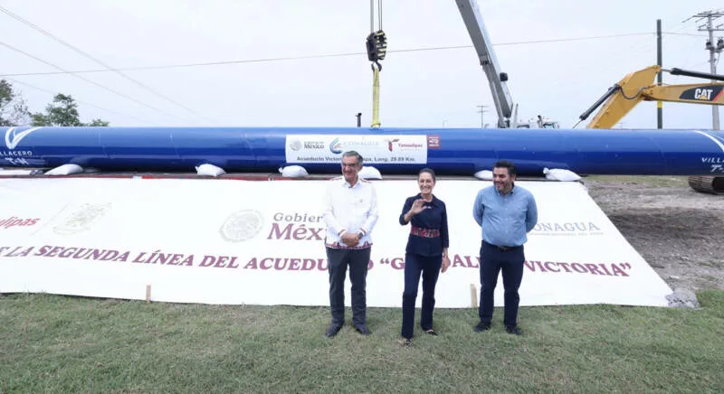 Ciudad Victoria, Tamaulipas. - La presidenta de México, Claudia Sheinbaum Pardo, afirmó que el Gobierno Federal está cumpliendo con Tamaulipas al poner en marcha la construcción del segundo acueducto Guadalupe Victoria, una obra que garantizará el suministro de agua para más de 350 mil habitantes de la capital del estado.