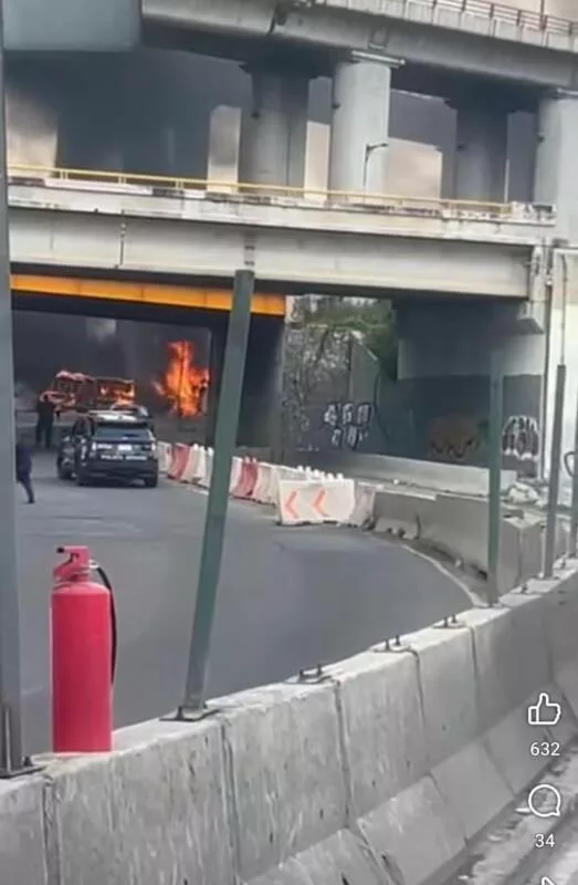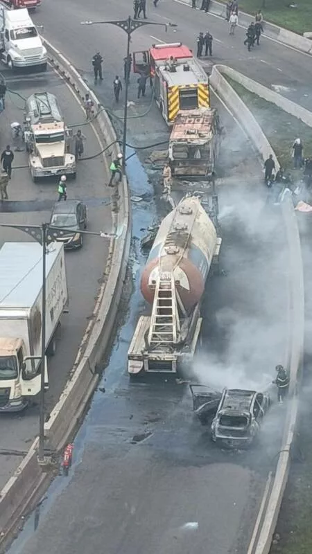 El siniestro, que provocó ráfagas de fuego de al menos 30 metros de altura, y que ocurrió cerca del paradero Santa Marta, afectó a 18 vehículos.