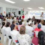 Durante el diálogo, las trabajadoras expresaron necesidades prioritarias, entre las que destacan: apoyo con despensas durante el periodo de veda del camarón, acceso al programa federal Bienpesca, y la creación de una preparatoria en la colonia.