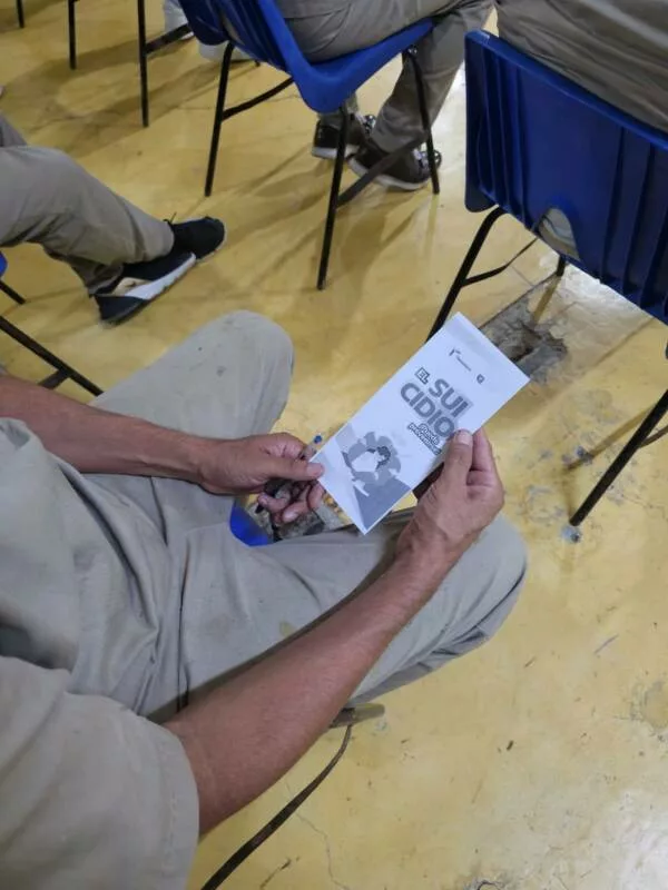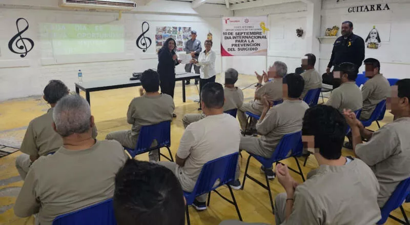 Altamira, Tamaulipas.- Dentro de las actividades realizadas por la Secretaría de Seguridad Pública de Tamaulipas (SSPT) durante el Día Mundial de la Prevención del Suicidio, conmemorado cada 10 de septiembre, en el Centro de Ejecución de Sanciones (CEDES) del municipio de Altamira llevó a cabo la plática “Suicidio: La Prevención Eres Tú”, dirigida a personas privadas de la libertad (PPLs) del área varonil.