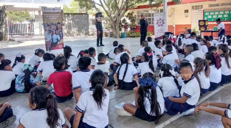 Ciudad Victoria, Tamaulipas.- Con la finalidad de reforzar la confianza de la niñez tamaulipecas en sus autoridades encargadas de preservar la seguridad pública, y de prevenir el acoso escolar, personal de la Guardia Estatal de Género acudió a dos escuelas primarias de Ciudad Victoria para convivir con más de 300 estudiantes de primero a tercer grado.