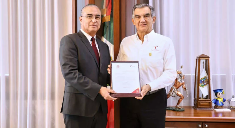 Ciudad Victoria, Tamaulipas. - El gobernador Américo Villarreal Anaya, entregó oficialmente el nombramiento a Marco Antonio García Barrientos como nuevo consejero jurídico de la Oficina del Ejecutivo estatal, cargo desde el cual asumirá una responsabilidad clave para fortalecer la legalidad, la transparencia y la justicia en beneficio de las tamaulipecas y los tamaulipecos.
