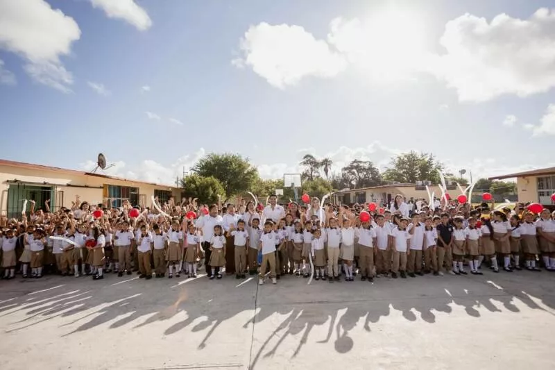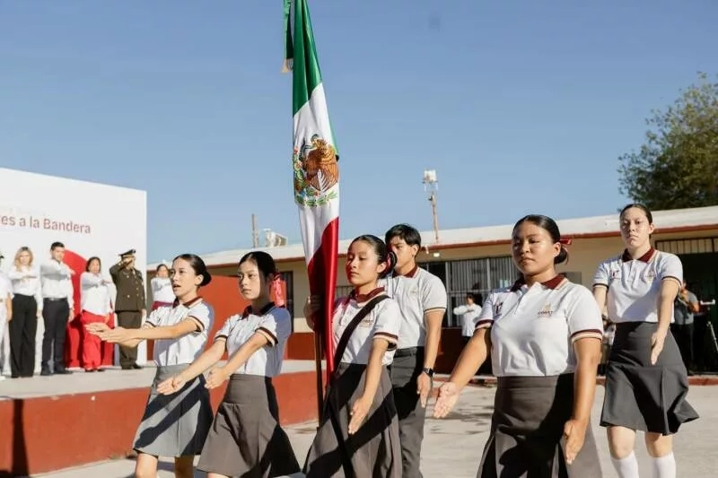 Matamoros, Tamaulipas.— En el marco de la ceremonia de honores a la bandera, el presidente municipal Beto Granados visitó la escuela primaria Ernesto Guajardo Salinas, ubicada en la colonia Ampliación Solidaridad, para hacer entrega oficial de la nueva barda perimetral del plantel. Esta obra, que responde a una solicitud ignorada por administraciones anteriores, fue realizada con una inversión cercana a los 700 mil pesos provenientes del programa Fortamun, y abarca más de 50 metros lineales.