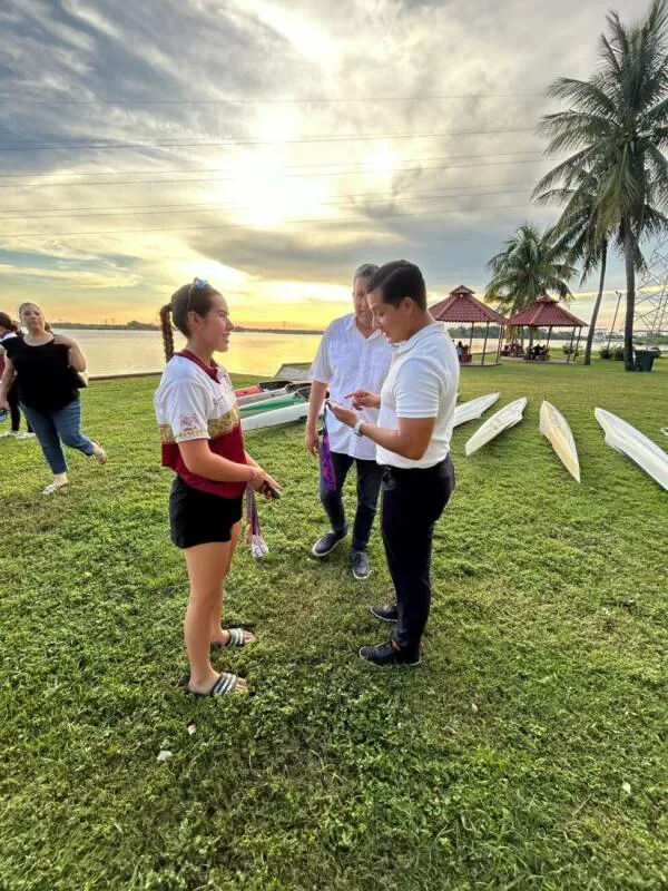 Durante el encuentro en la Laguna del Chairel de Tampico, sitio donde entrena el equipo, Virués Lozano realizó la entrega formal de una embarcación para el seleccionado nacional y medallista, Diego Popa, como parte de las acciones para fortalecer la preparación de los atletas tamaulipecos.
