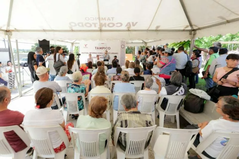 La Presidenta Municipal de Tampico, Mónica Villarreal Anaya, encabezó este lunes, el arranque de la Onceava Edición del Festival Internacional de Arte Público “Renace”, que este año lleva por título “Ecos del Manglar”, cuyo propósito es mejorar los espacios públicos de la ciudad mediante intervenciones artísticas de gran formato realizadas por muralistas de diversas nacionalidades que aportarán su talento y visión.